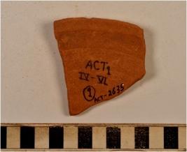 | Description / विवरण | Fragment of rim a bowl of red ware with incurved rim, tapering sides of medium fabric. |