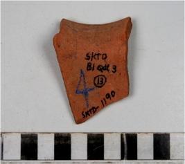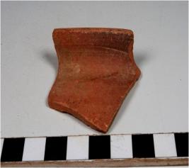 | Description / विवरण | A fragment of a miniature vase of red ware with out turned rim, concave neck, spreading shoulder of fine fabric. |