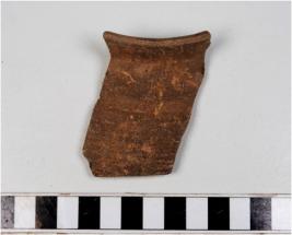 | Description / विवरण | Fragment of rim a pot of red ware with out turned rim, vertical neck, oblique sides of medium fabric. |