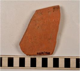 | Description / विवरण | A fragment of a vase of red ware with out turned rim, oblique sides of medium fabric. |
