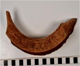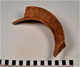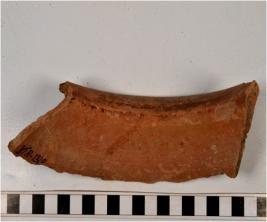 | Description / विवरण | A fragment of a vase of Red Ware with flared rim, concave neck tapering sides and showing incised horizontal line on surface of fine fabric. |
