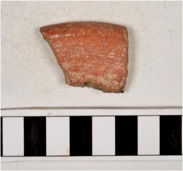 | Description / विवरण | A fragment of a rim of red ware with featureless rim, tapering sides. |