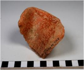 | Description / विवरण | A fragment of a rim of red ware with out turned rim, oblique sides uneven shape, treated with red slip. |