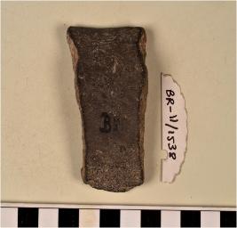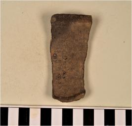 | Description / विवरण | A fragment of a vase of black ware with featureless rim, concave neck, straight sides. |