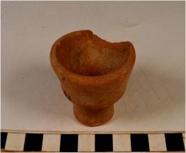 | Description / विवरण | Fragment of rim a miniature pot of red ware with featureless rim, pedestal base of medium fabric. |