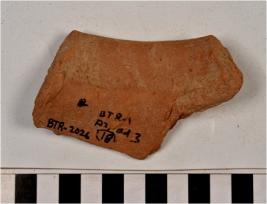 | Description / विवरण | A fragment of a pot of Red Ware with externally thickened rim, oblique sides of medium fabric. |