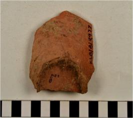 | Description / विवरण | A fragment of a base of red ware with discular base of medium fabric, well levigated. |
