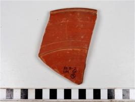 | Description / विवरण | A fragment of a dish of dark red ware with incurved rim, treated with red slip, oblique sides of medium fabric fine texture. |