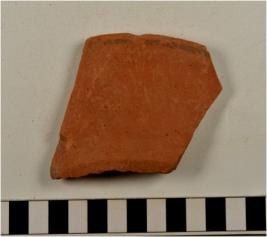 | Description / विवरण | A fragment of a rim of red ware with splayed out rim painted with black showing horizontal band on exterior of fine fabric. |