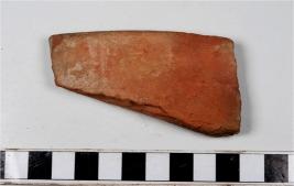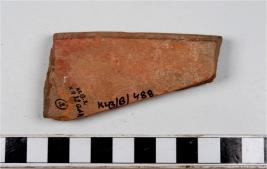 | Description / विवरण | A fragment of a bowl of red ware with slightly out turned rim, straight sides painted with black showing horizontal band on rim of fine fabric. |