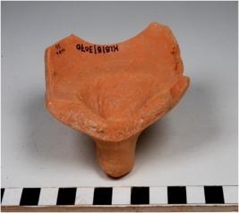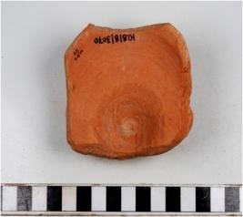 | Description / विवरण | A fragment of a lid of red ware with button knob at the top, broken flaring profile of fire fabric. |