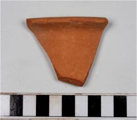 | Description / विवरण | A fragment of a vase of red ware with out turned rim, concave neck, tapering sides of medium fabric. |