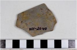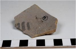 | Description / विवरण | A fragment of a base of bowl of painted grey ware with discular base showing black bands in inner surface of medium fabric, fine texture. |