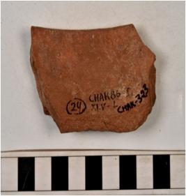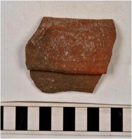 | Description / विवरण | A fragment of a basin of red ware with vertical rim, tapering sides of medium fabric. |