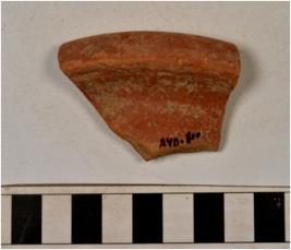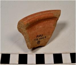 | Description / विवरण | A fragment of a vase of red ware with externally thickened rim, straight sides of medium fabric. |