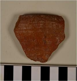 | Description / विवरण | A fragment of a bowl of red ware with featureless rim and oblique sides. |