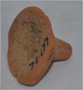 Terracotta lid type gamesman. The top of the lid is narrow most porbably used to lift of the hand.
