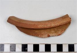 | Description / विवरण | A fragment of a vase of red ware with out turned rim, vertical neck, tapering sides of medium fabric. |
