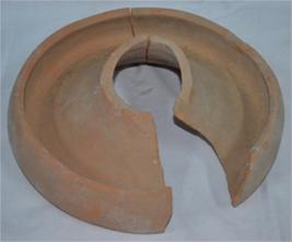 A ring type piece of pottery. It may be the lower portion of a container. The upper portion is broken.