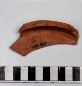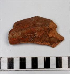 | Description / विवरण | A fragment of a base of red ware with flat base of medium fabric. |