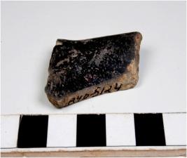 | Description / विवरण | A fragment of a rim of grey ware with out turned rim, treated with black slip, of medium fabric. |