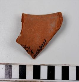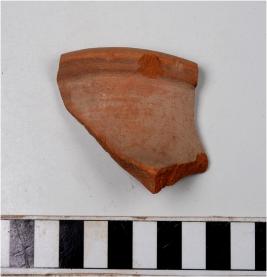 | Description / विवरण | A fragment of a vase of red ware with out turned rim, concave neck oblique sides of fine fabric. |