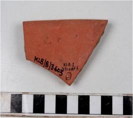 | Description / विवरण | A fragment of a bowl of red ware with featureless rim, tapering sides of fine fabric. |