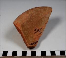 | Description / विवरण | A fragment of a base of dish on stand of red ware with flaring profile of fine fabric. |
