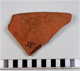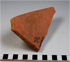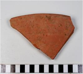 | Description / विवरण | A fragment of a base of dish on stand of red ware with flaring profile of fine fabric. |