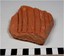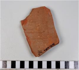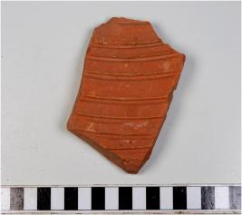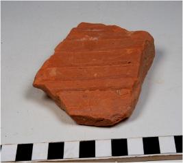 | Description / विवरण | A potsherd of a red ware showing grooves on interior of fine fabric. |