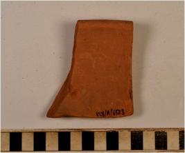 | Description / विवरण | Fragment of rim a basin of red ware with out turned rim, oblique sides of thick fabric, fine texture. |