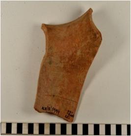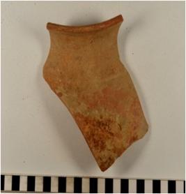 | Description / विवरण | A fragment of a vase of red ware with out turned rim, concave neck, oblique sides of fine fabric. |