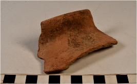 | Description / विवरण | A fragment of a vase of red ware with flared rim, concave neck, oblique sides of medium fabric not well levigated coarse surface. |