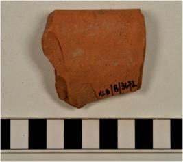 | Description / विवरण | A fragment of a vase of red ware having mica dust with flaring rim, slightly concave neck of fine fabric, fine texture, well levigated. |