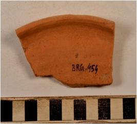 | Description / विवरण | A fragment of a bowl of red ware with incurved rim vertical profile of medium fabric rough surface. |