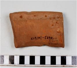 | Description / विवरण | A fragment of a pot of red ware with flared rim, vertical neck, tapering sides of medium fabric well levigated. |