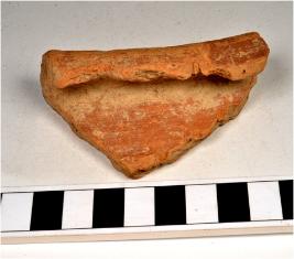 | Description / विवरण | A fragment of a vase of red ware with out turned rim, tapering sides, of medium fabric, ill fired. |