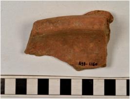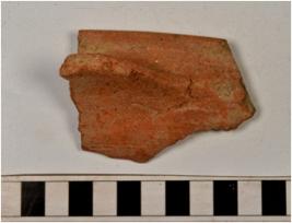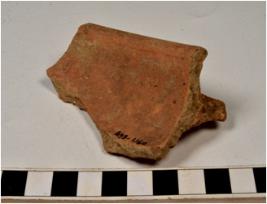 | Description / विवरण | A fragment of a bowl of red ware with nail headed rim, having handle on shoulder, tapering sides, of medium fabric and ill fired. |