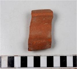 | Description / विवरण | A fragment of a vase of red ware with out turned rim, concave neck, oblique sides of fine fabric. |