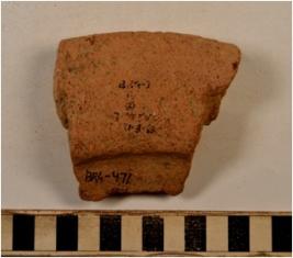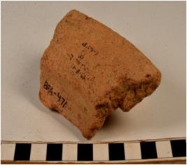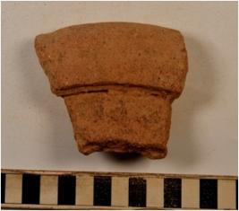 | Description / विवरण | A fragment of a rim of red ware with externally thickened out turned rim, oblique sides of coarse fabric, sturdy texture, tempered with mica content, rough surface. |