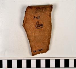 | Description / विवरण | A fragment of a pot of dull red ware with out turned rim, tapering sides, of medium fabric, ill fired. |