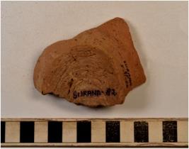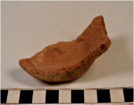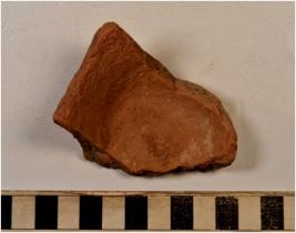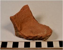 | Description / विवरण | A fragment of a base of red ware with broken discular base of medium fabric. |
