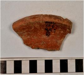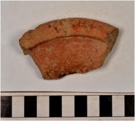 | Description / विवरण | A fragment of a rim of red ware with beaded rim, concave neck, treated with red slip of medium fabric and ill fired. |