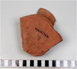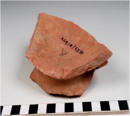 | Description / विवरण | A fragment of a cup on stand of red ware with large cup slightly out turned rim, broken circular base of medium fabric. |