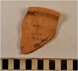 | Description / विवरण | A fragment of a bowl of dull red ware with incurved rim, tapering sides of medium fabric. |