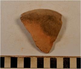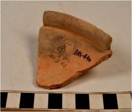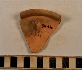 | Description / विवरण | A fragment of a bowl of dull red ware with incurved rim, straight sides of thin fabric, fine texture. |