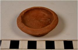 | Description / विवरण | A complete earthern lamp of red ware with incurved rim, flat circular base of medium fabric, fine texture. |