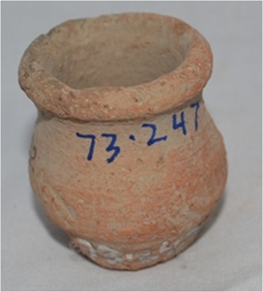 A small pot with narrow base and wider and open mouth.