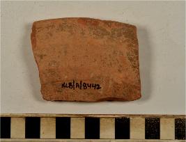 | Description / विवरण | A fragment of a dish of red ware with beaded rim, flat base of fine fabric. |