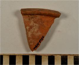 | Description / विवरण | A fragment of a bowl of red ware with out turned rim, tapering sides of medium fabric. |